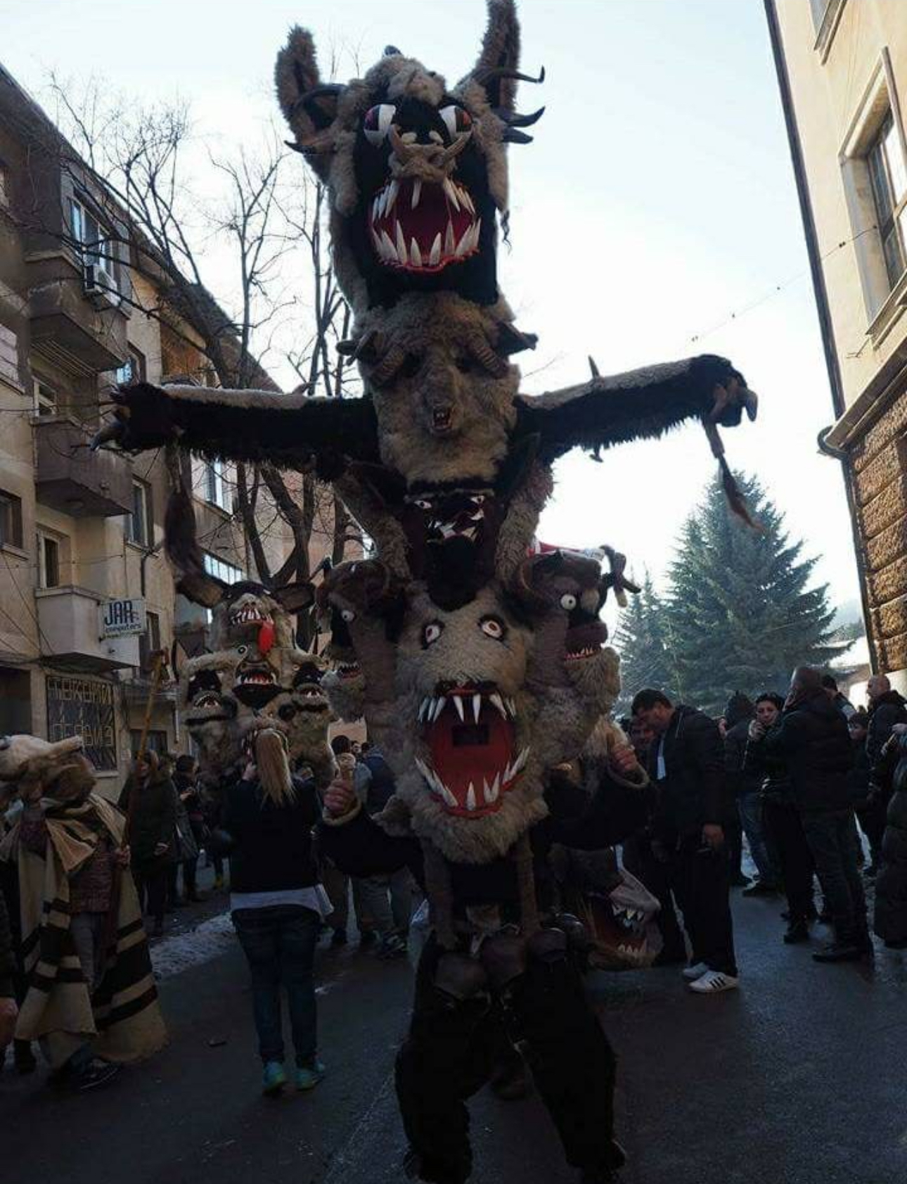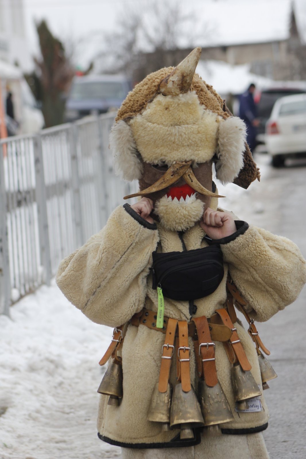 Traditionally, the surovakari, the costumed revelers, go from house to house, ringing bells, stomping, warding off evil spirits, and receiving food in return.