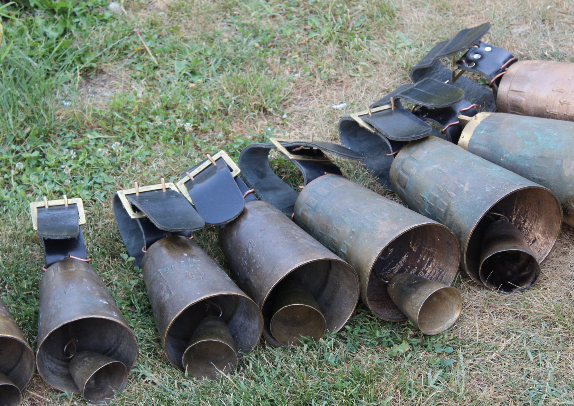 Once everything was laid out, the garden resembled a private museum. Fur masks and horned faces leaned against the ground, while heavy bells lay scattered across the grass. Some were the size of a child’s torso. There was no performance, no mysticism. Just two men, lifelong kukeri, explaining the mechanics of a tradition they’d known since before they could speak. The rustle of fur and metal against dry summer grass was its own kind of ceremony.